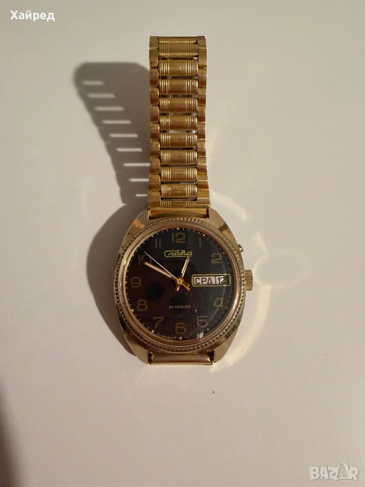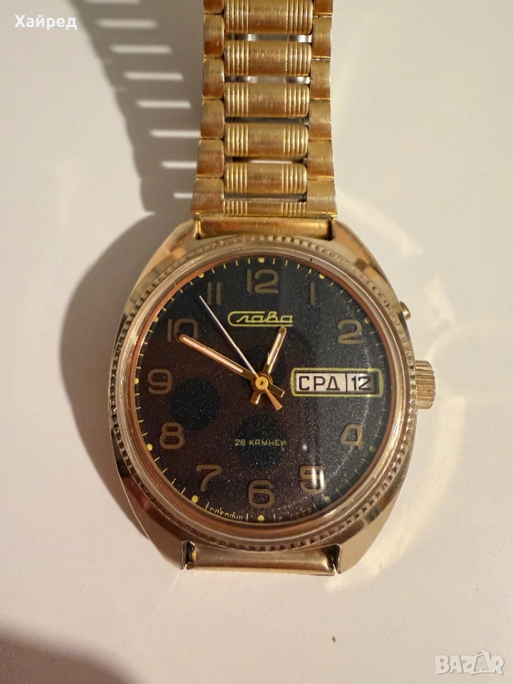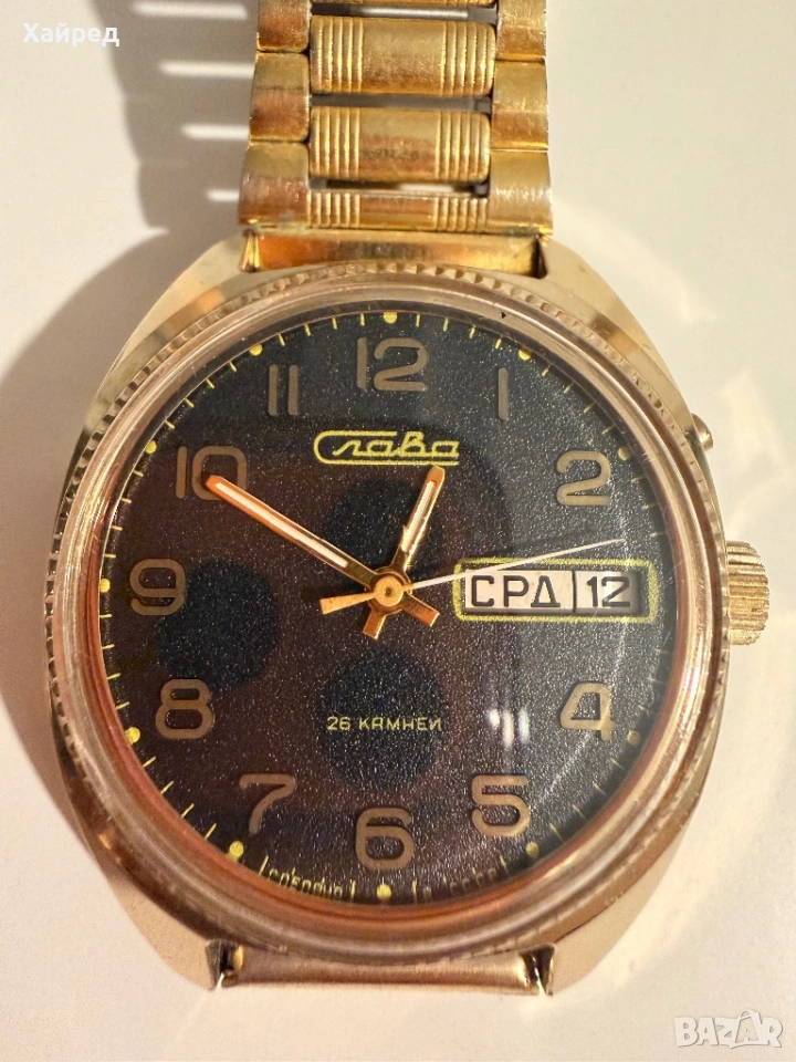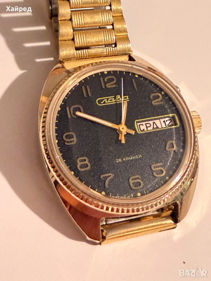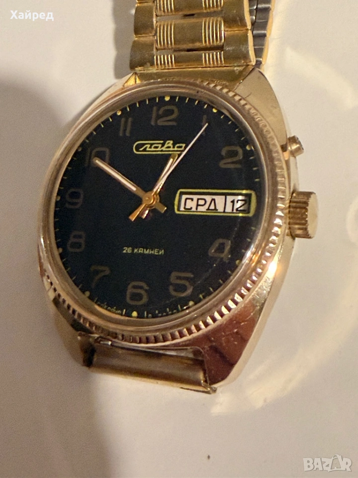Стар рядък механичен часовник мъжки СЛАВА СССР 26 камъка позлатен Au → Обява 53978064