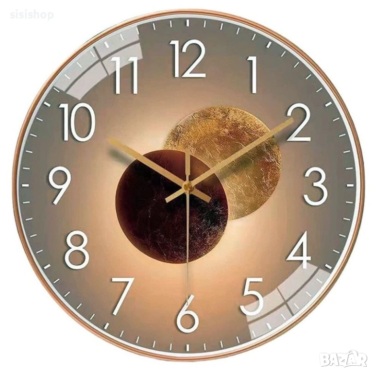 1 х Стенен часовник с дизайн "Две луни" (златист корпус).