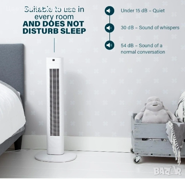 Вентилатор кула Princess,3 скорости, 3 режима, осцилация 80°, 8-часов таймер