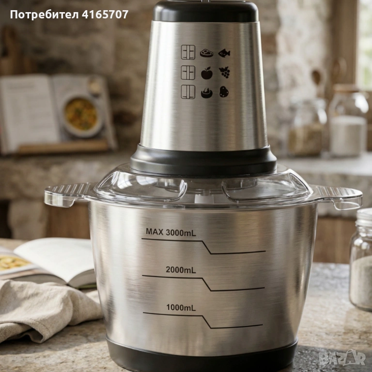 Кухненски робот Cheffinger 3L, 1000W – мощен с 2 скорости, мултифункционален чопър → Обява 53978199