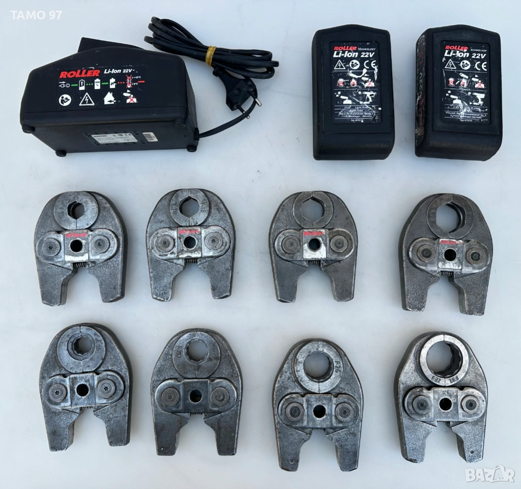 Продавам лека и компактна акумулаторна радиална мини преса на Ролер напълно идентичен с Ремс само името е различно. Машината е в добро визуално състояние и работи отлично. Оригинално немско производство внос от Франция. Обявената цена включва пресата, 2 броя литиево-йонни батерии 22V с индикатор, зарядно устройство, 8 броя челюсти с размери 15-18-22-28 - 16-20-26-32 и куфари. Пращаме с опция преглед и тест с куриерска фирма еконт може и лично предаване за гр. Шумен.