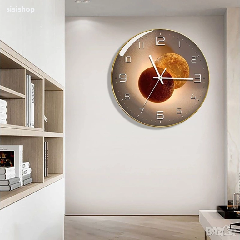 Стенен Часовник „Фазите на Луната“ – Уникален Декор с Тих Механизъм