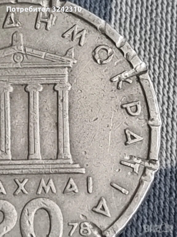 Монета от 20 драхми, Гърция, 1978 г. Изобразената монета е уникална. Държави за доставка: Държави за доставка