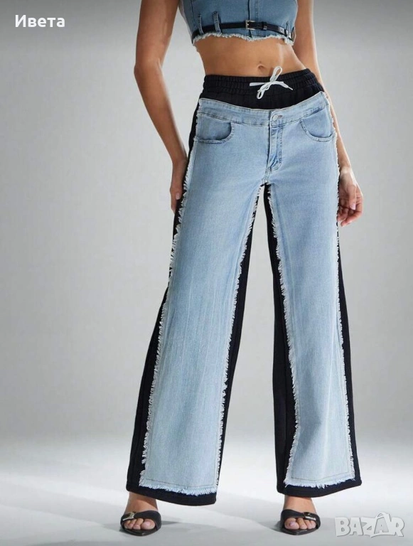 Дамски интересни дънки от две материи ,дънков плат и памук . Много моделни и удобни