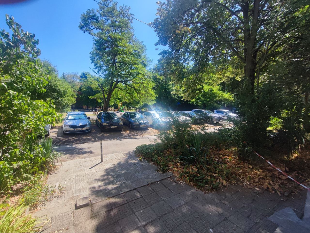 Пред блока има паркоместа за свободно паркиране, градинка с реновирана детска площадка и спортно игрище.