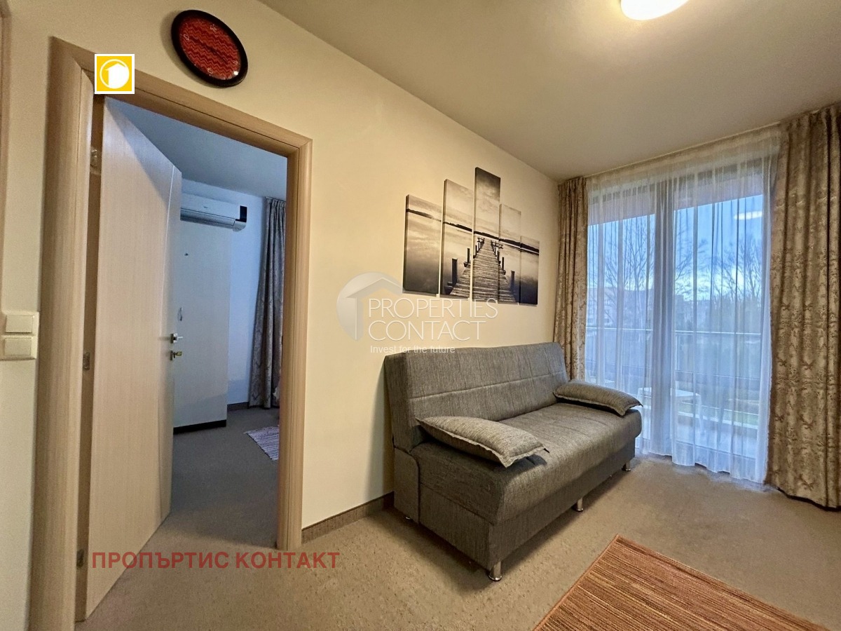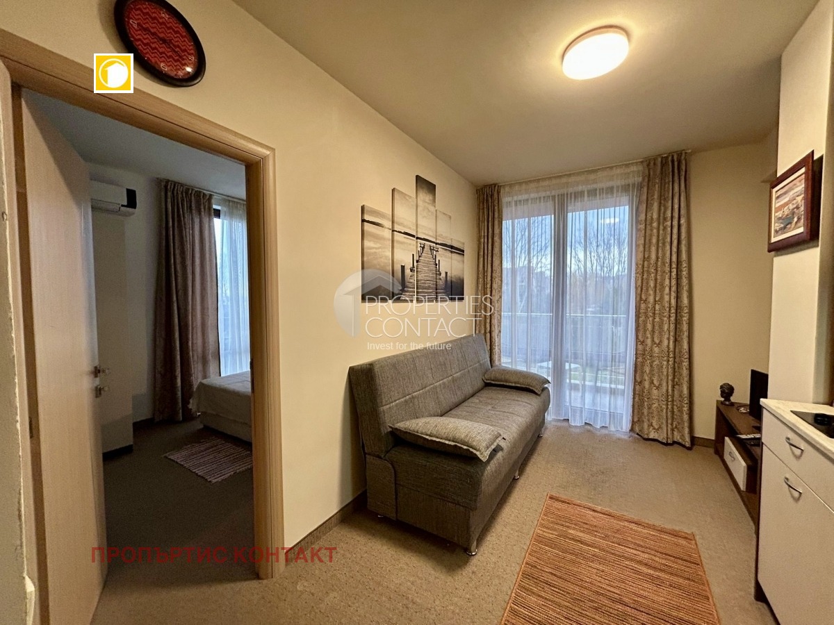Представяме ви изключително изгоден двустаен апартамент в Слънчев бряг, разположен в престижния комплекс „Тарсис“ – предпочитан избор за покупка на имот до морето в България. Имотът е подходящ както за лично ползване, така и като инвестиция с гарантиран интерес за отдаване под наем. Апартаментът се намира на втори етаж и предлага приятна гледка към озеленен парк, осигуряваща спокойствие и комфорт. Общата площ е 39,33 кв.м, с практично и функционално разпределение, което включва: входно антре светла дневна с кухненски бокс самостоятелна спалня баня с тоалетна тераса Жилището е компактно, добре организирано и напълно обзаведено с всичко необходимо за незабавно ползване. Подходящо е както за ваканционен имот, така и за целогодишно обитаване или краткосрочно отдаване под наем в Слънчев бряг. Комплекс „Тарсис“ е разположен в тиха и зелена зона на курорта, далеч от шума, но с лесен достъп до плажа и централната част. Това го прави изключително търсен за семейна почивка и инвестиции в недвижими имоти по Черноморието. Удобства в комплекса: • Аквапарк • Волейболно игрище • Два ресторанта с разнообразна кухня • СПА център • Два басейна за възрастни, включително 30-метров басейн • Два детски басейна • Детска площадка и анимация • Озеленени площи и зони за отдих • Паркинг • Контролиран достъп и поддръжка Имотът се продава напълно обзаведен и оборудван, готов за нанасяне или отдаване под наем.