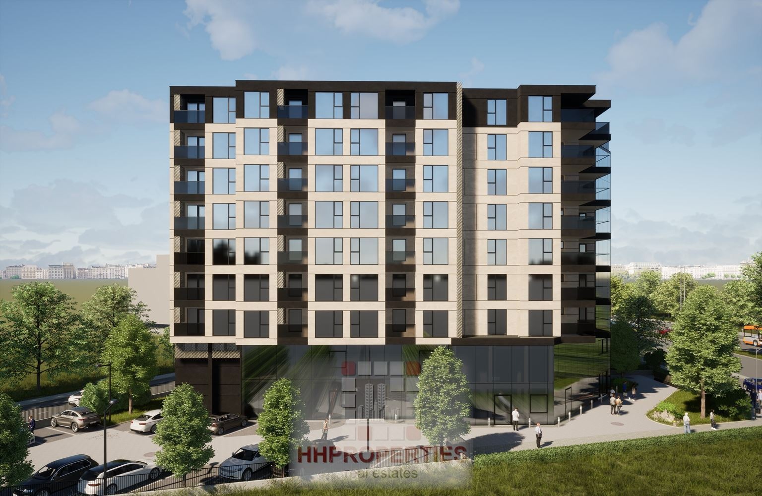 🏡 Сградата впечатлява с модерен архитектурен почерк, при който еркери, балкони и прозоречни отвори са комбинирани в хармонична фасадна композиция. Изпълнена е с фасадна система от стъклокерамика, HPL, композитни панели и естествен камък, интегрирани в окачена вентилируема фасада решение, гарантиращо не само стил, но и дълготрайност.