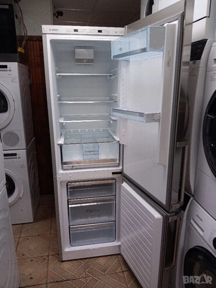 Иноксов комбиниран хладилник с фризер Бош Bosch А++ с две години гаранция!