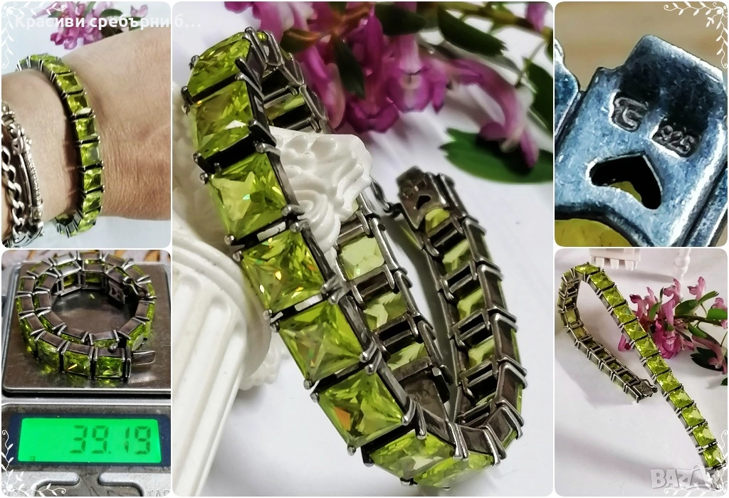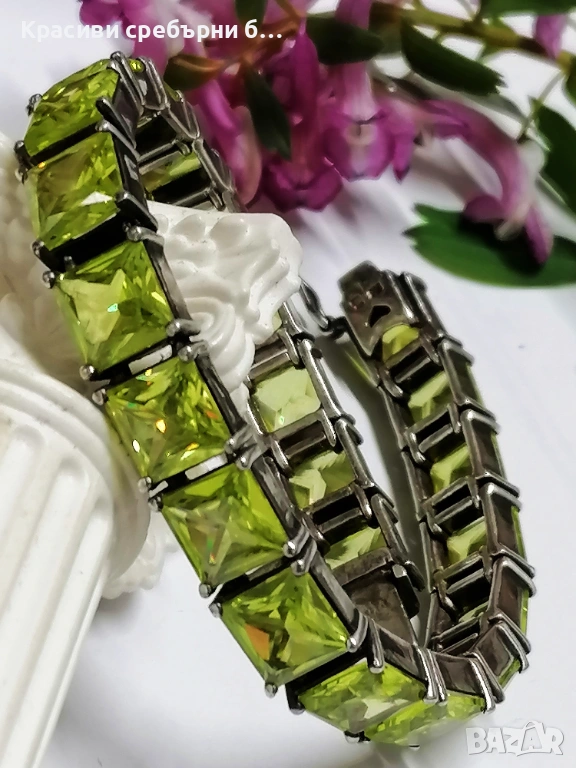 Масивна сребърна гривна с перидот💚,Тегло: 39.19гр → Обява 53979979