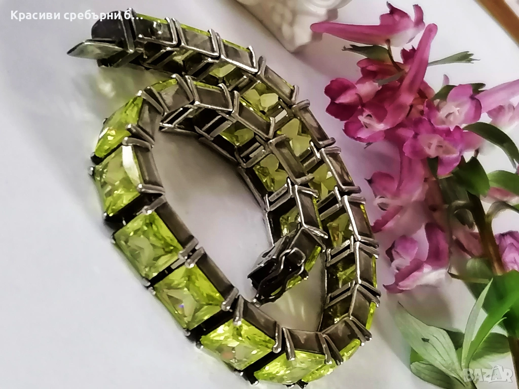 Масивна сребърна гривна с перидот💚,Тегло: 39.19гр