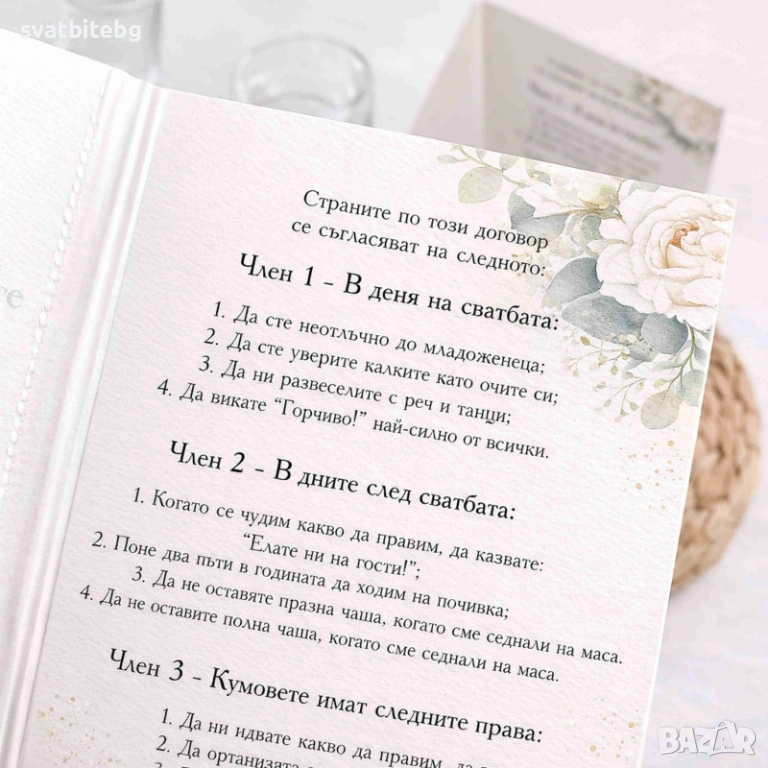 Кумски договор, Сватбен Договор за Кумове, Подаръчни кутии за Кумове Покана → Обява 53980093