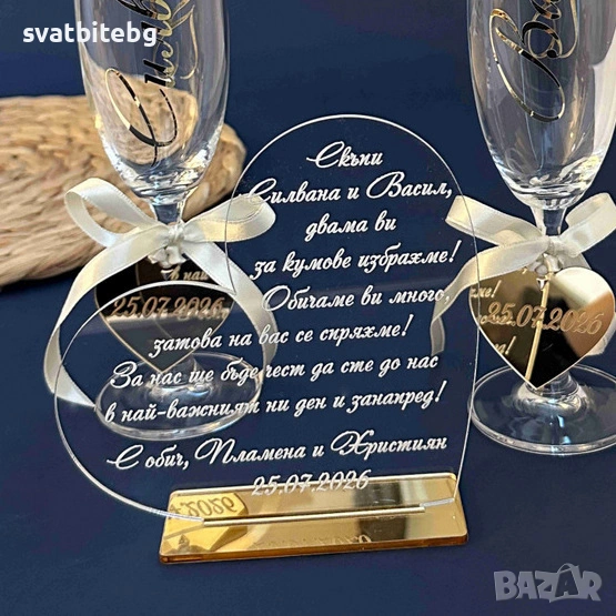 Направете жеста още по-личен и вълнуващ с индивидуален надпис, създаден специално за Вашите кумове.