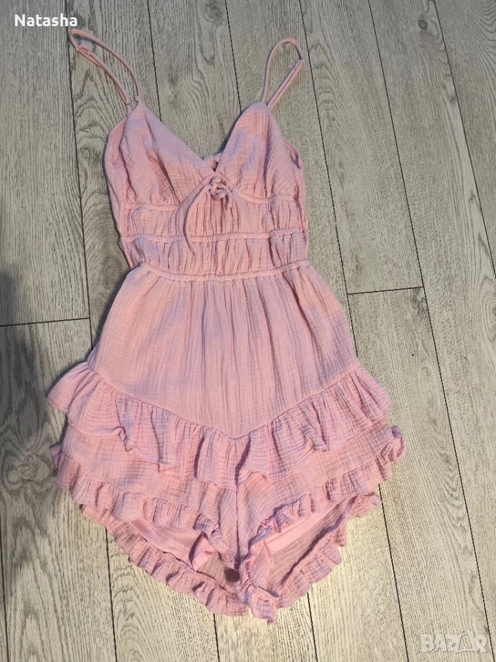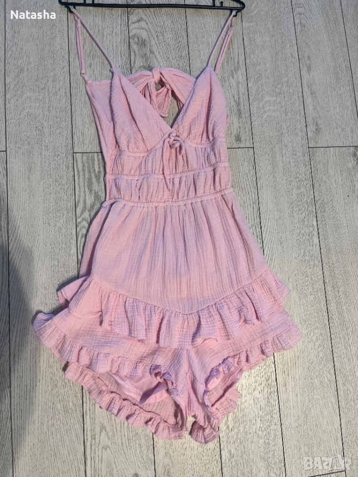 Дамски гащеризон, много удобен подходящ за различни поводи , нов само пробван, мека материя цвят бебешко розово.