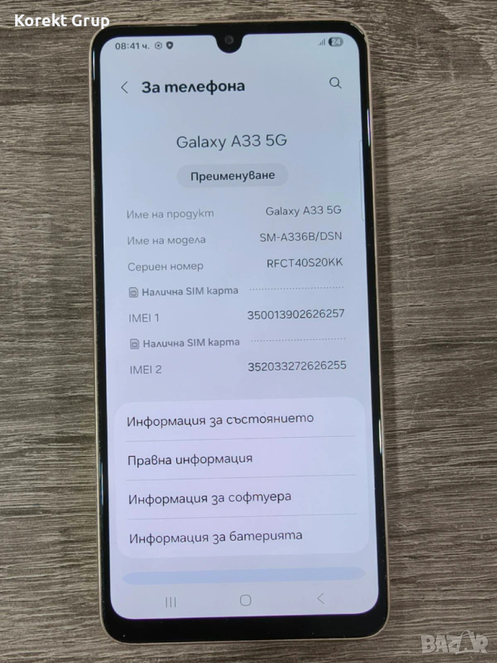 Продавам Samsung A33 5G в много добро състояние без забележки по телефона няма удари и тежки драскотини като цяло визуално е много добре изглеждащ телефон.Има 128гб вътрешна памет и 6гб рам памет.