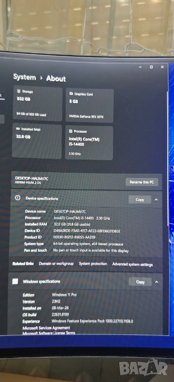 Продавам Много Добро PC Intel 5 14400/32Gb D5/1TB SSD nVme/FE RТX 3070/Гаранция