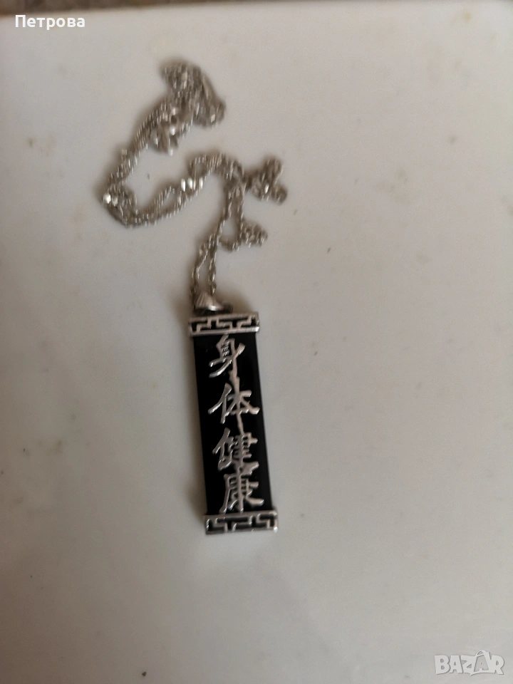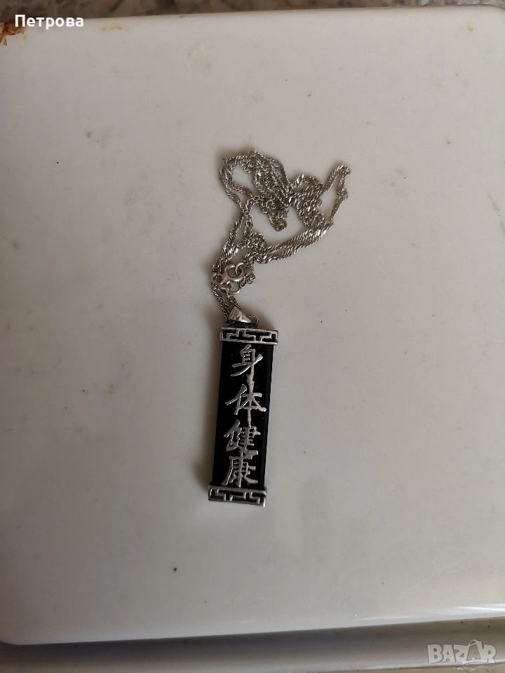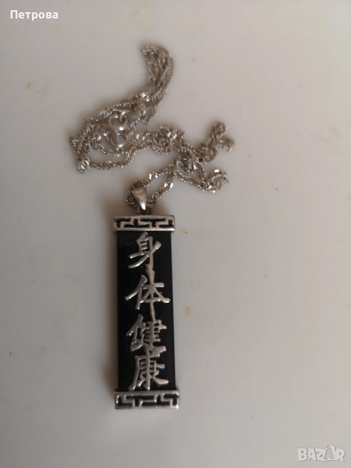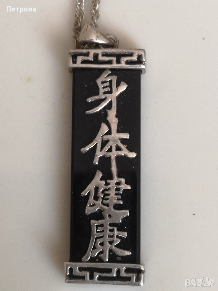 Сребърен медальон с плочка от черен оникс.