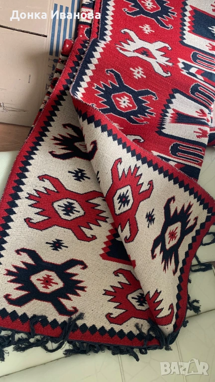 Изработен по традиционна българска технология, килимът се отличава с изключително качество, здравина и уникални орнаменти. Съхраняван е в нафталин и е без забележка.