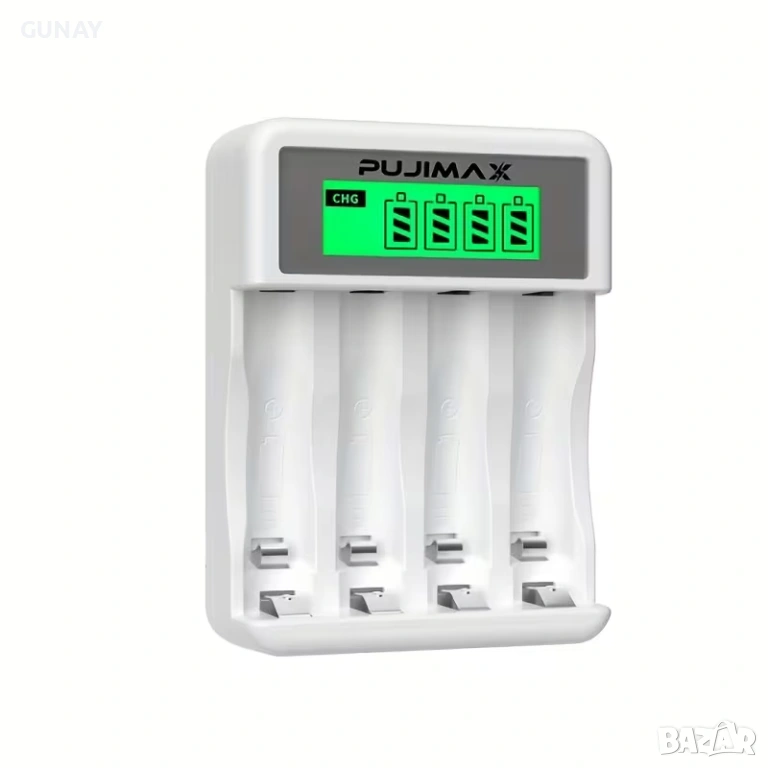 PUJIMAX Зарядно за AA/AAA NiMH/NiCd батерии с LCD дисплей, 4 гнезда