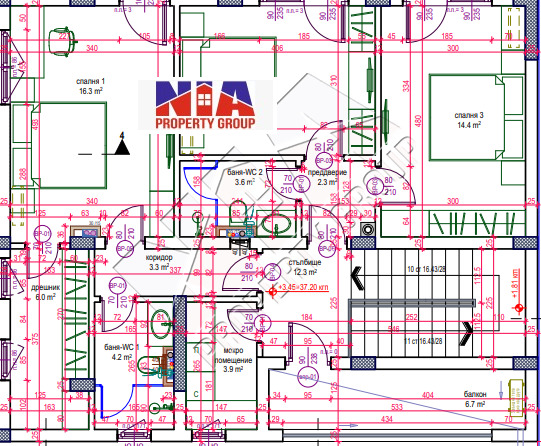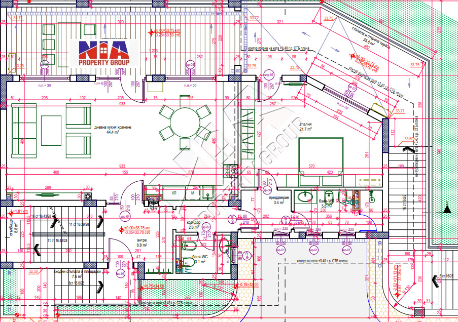 Хол и трапезария от 200 кв.м,четири спални и четири бани.