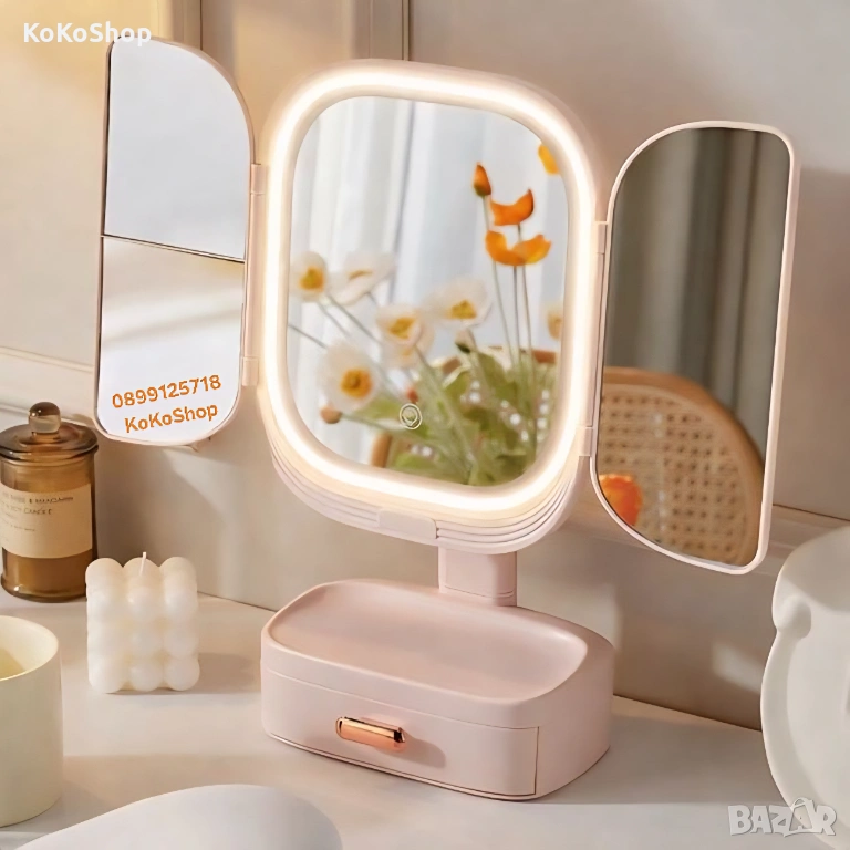 Тройно огледало с LED светлини - модерно, практично и с красив дизайн.