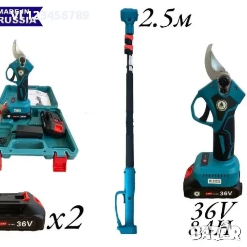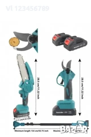 2,5м с Акумулаторна градинска ножица и Акумулаторен трион с 15см шина с безчетков мотор