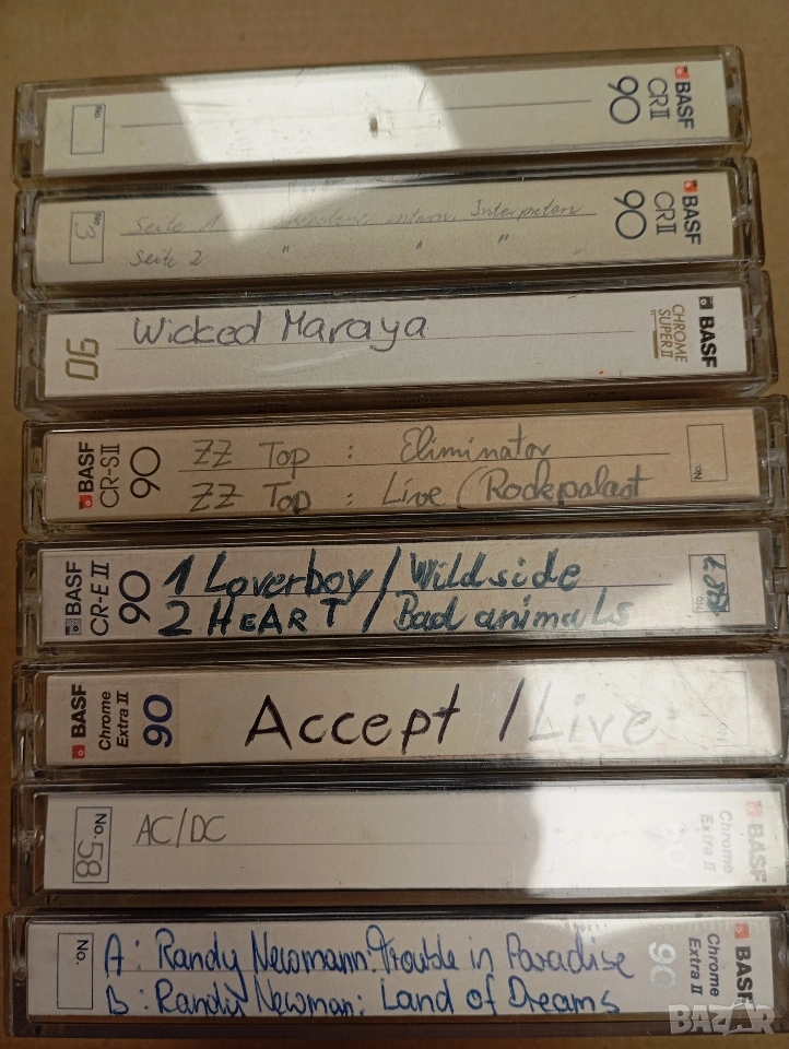 Лот от 8 аудио касети BASF хромни ленти с AC/DC,Accept-live,ZZ TOP,Loverboy,Heart,Wicked Maraya → Обява 53981593