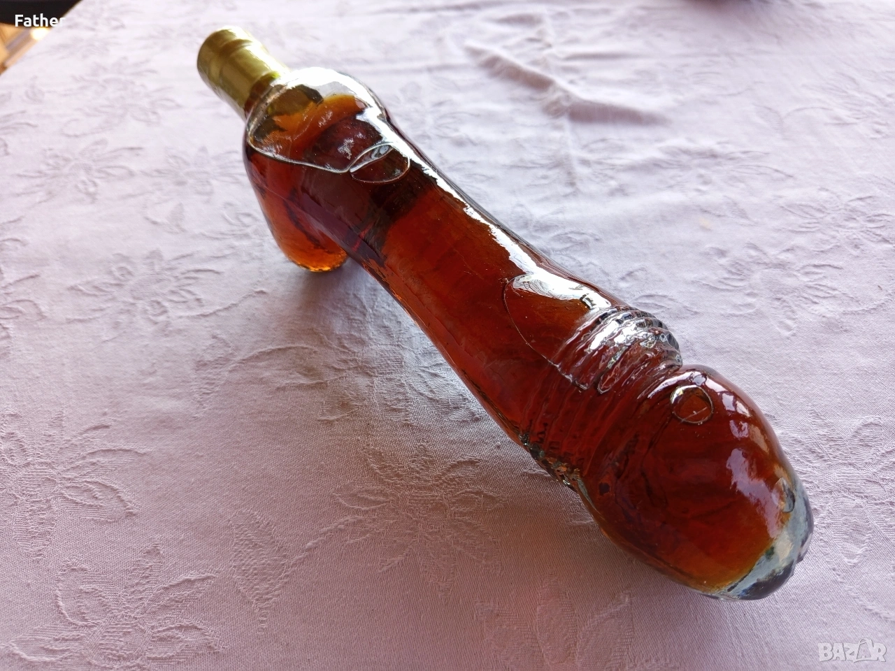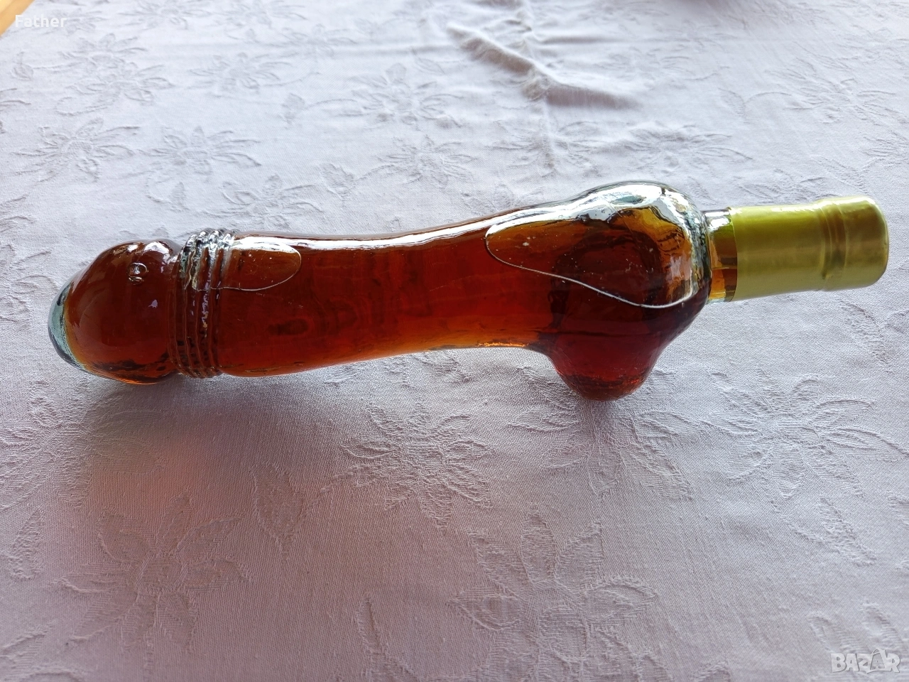 Интересна бутилка във формата на ... (вижда се) пълна с бренди. Неразпечатана. Подходяща за декорация или забавен подарък.