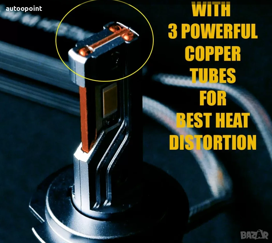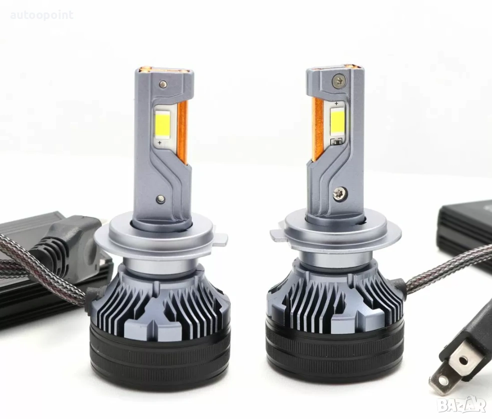 - Диоден кит с висока технология и пионер в областа като един от малкото с 3 медни пластини за охлаждане в корпуса, с вграден канбъс модул за работа с всички бордови компютри за къси или дълги светлини с ултра висока осветяемост - 3 пъти по висока от 55 ватов ксенон комплект.
