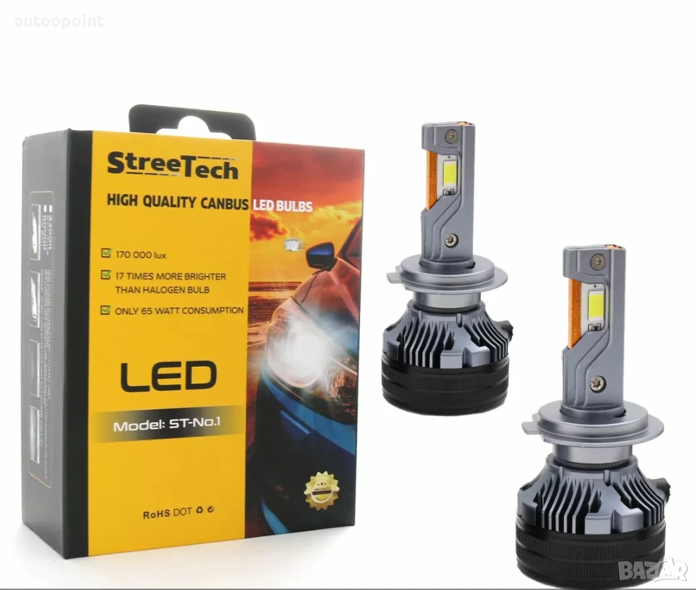 Лед крушки - Led система H7 Streetech модел STN1 за фарове - 170 000 Лукса, 65W - Canbus 6000K