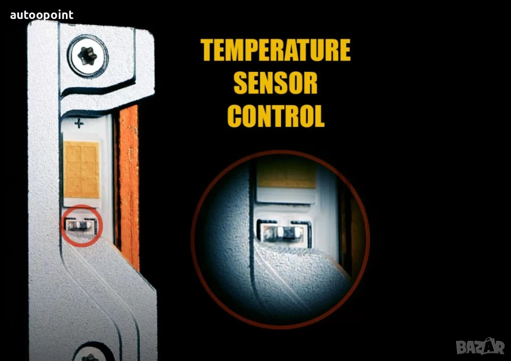 - Мощният светодиоден чипсет се следи от сензор в непосредствена близост под него и при достигане на температури над предела, се увеличават оборотите на вентилатора, като съответно ако продължи покачването на температурата, се намаля леко силата на светене за да се предотврати дефектиране. По този начин на практика е почти невъзможно да дефектира или изгори самият чипсет, което прави изключително надеждни този вид лед крушки.