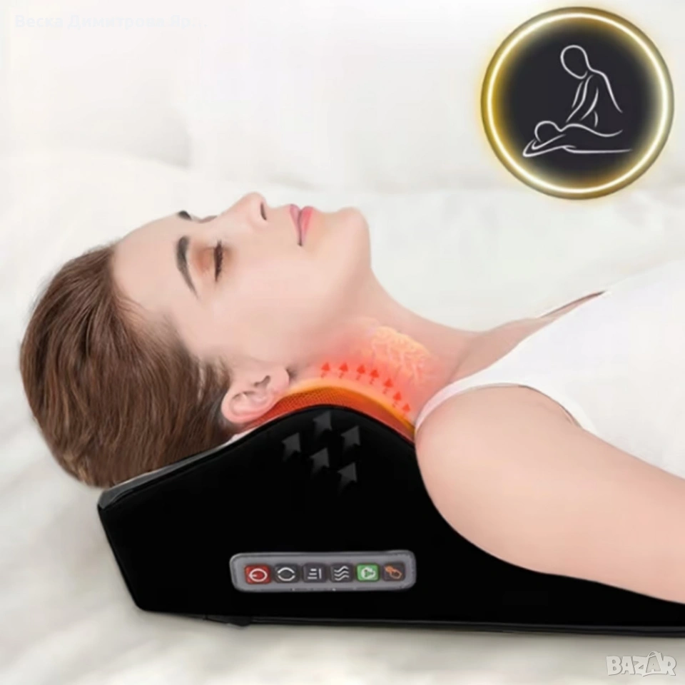 Ергономична масажна възглавница - 3 нива на интензивност и загряваща функция за пълен релакс → Обява 53981694