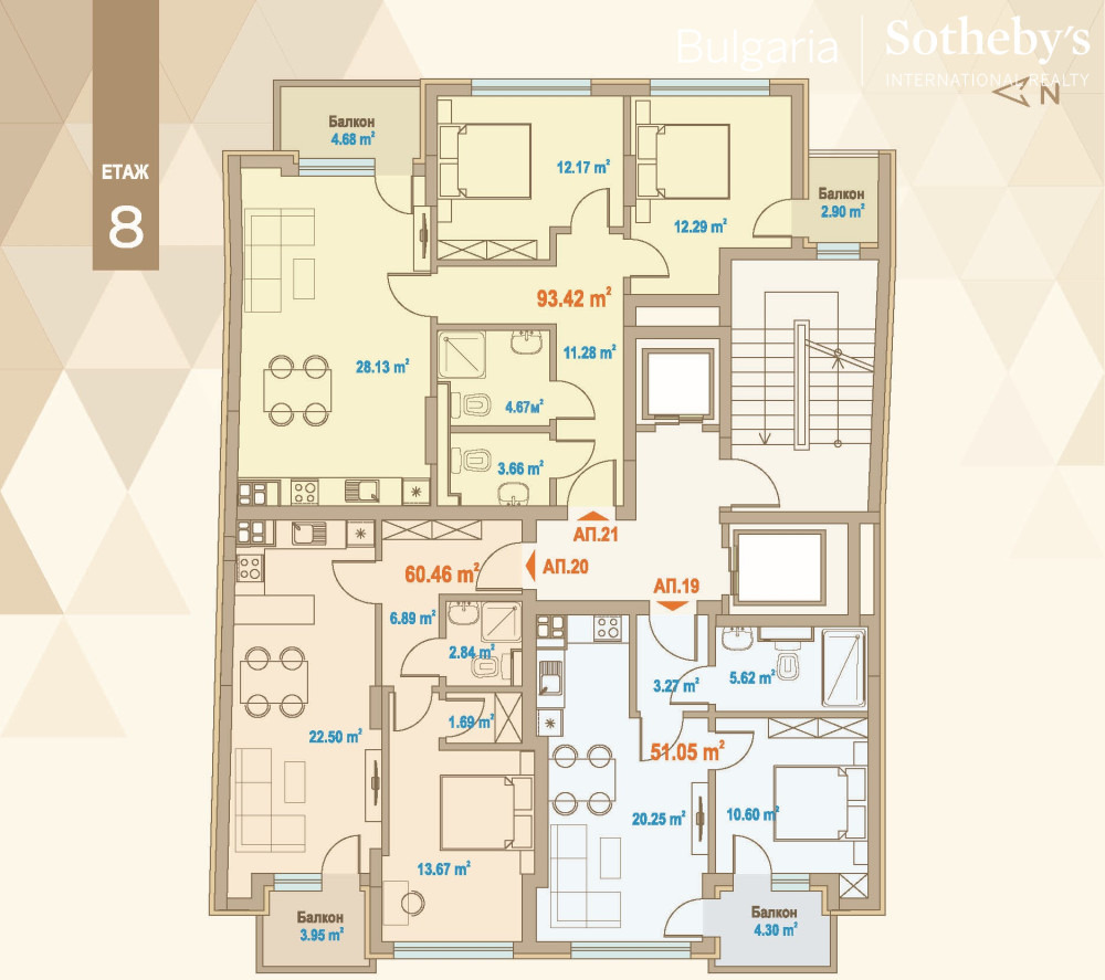 BULGARIA SOTHEBY’S INTERNATIONAL REALTY има удоволствието да Ви представи тристаен апартамент изключителен нов проект, създаден за хора с високи изисквания към средата на живот. 14 етажа и 38 апартамента – двустайни и тристайни, с функционални разпределения. Всички апартаменти в сградата ще се издават до ключ, предлагащи избор от няколко варианта висок клас материали.