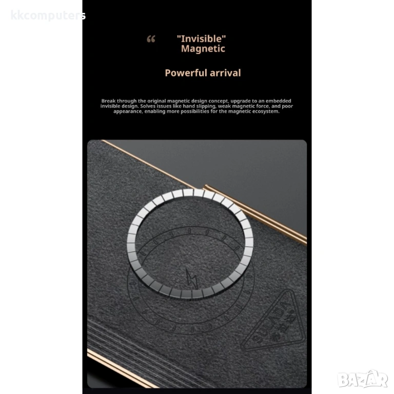 Вградената магнитна система позволява стабилно закрепване и съвместимост с различни магнитни аксесоари, без да увеличава излишно обема на калъфа.
