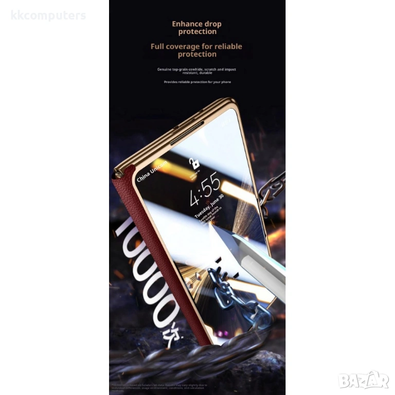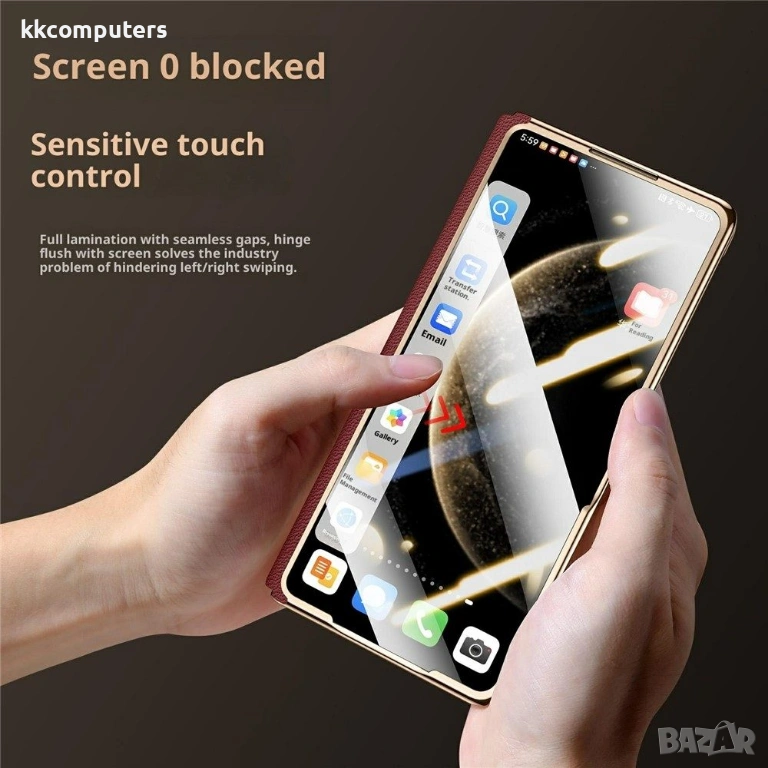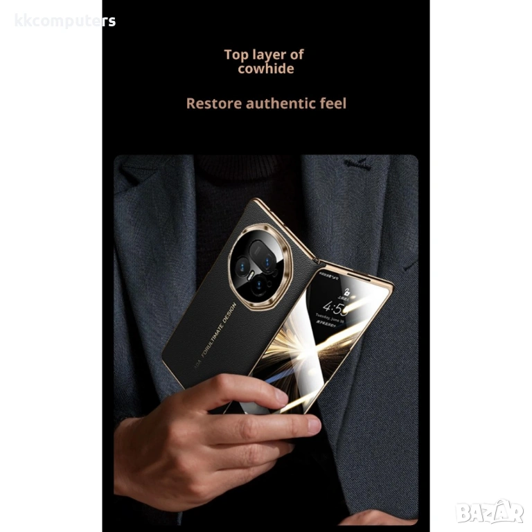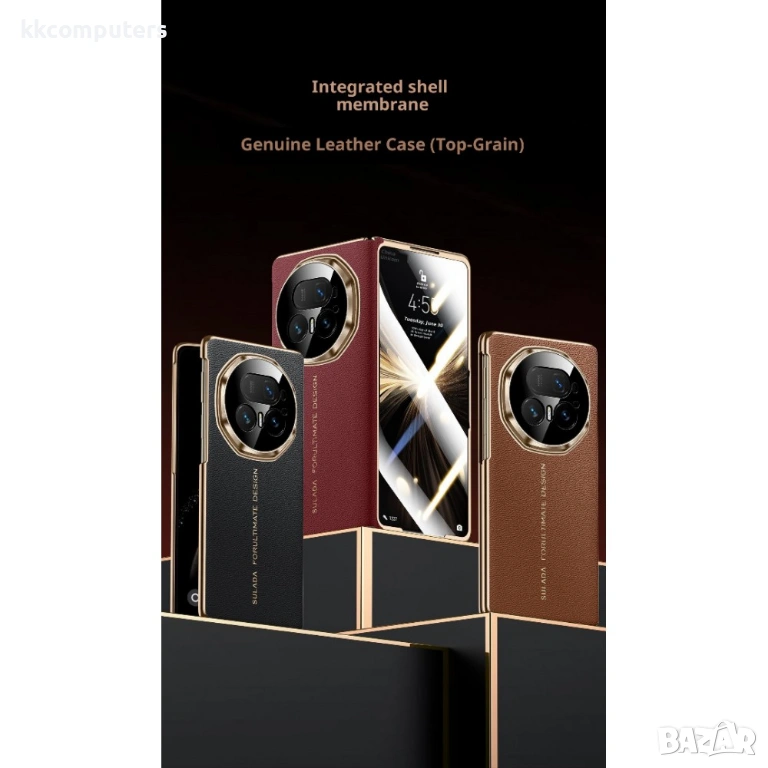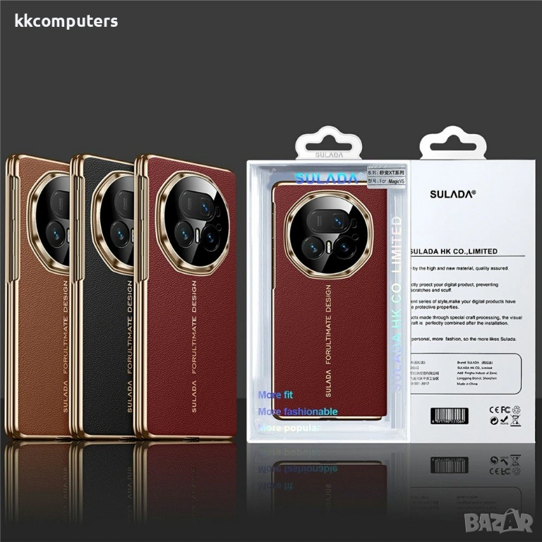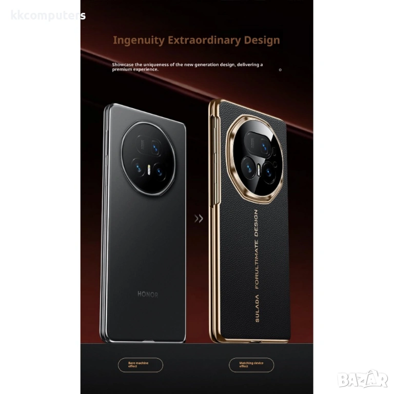 SULADA магнитен калъф за Honor Magic V5 5G, изработен от висококачествена естествена телешка кожа и здрава PC основа. Калъфът съчетава стилен външен вид, приятно усещане при допир и надеждна ежедневна защита на устройството.
