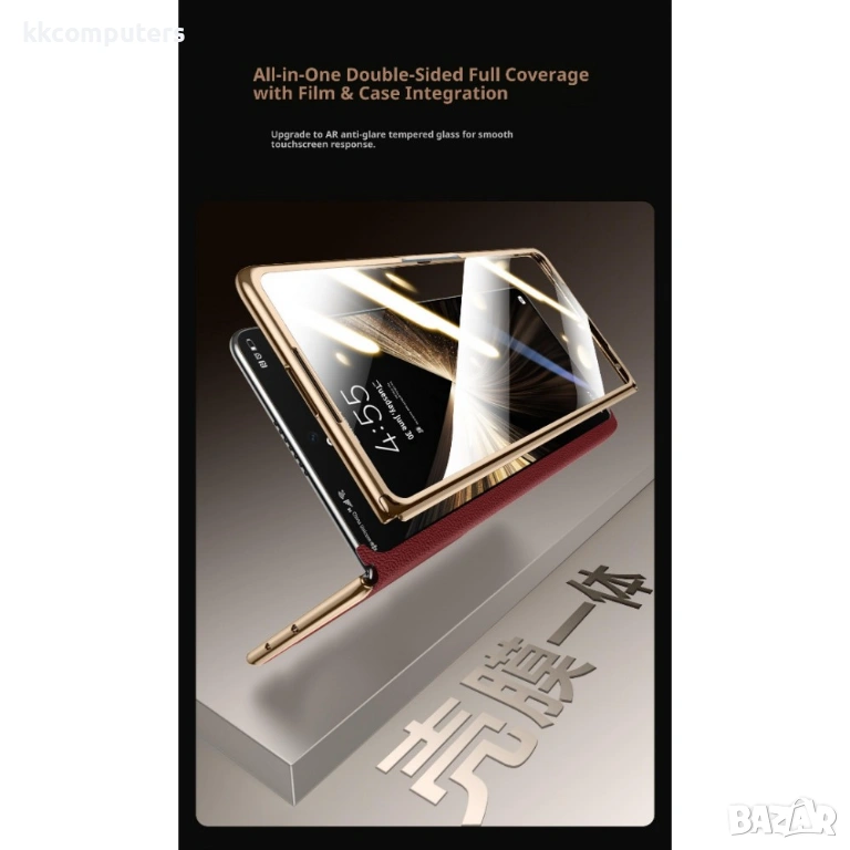 Моделът е с двустранен дизайн за цялостно покритие и допълнителна защита. В комплекта е включен протектор от закалено стъкло с AR антирефлексно покритие, който запазва добрата чувствителност на дисплея и осигурява плавно управление.