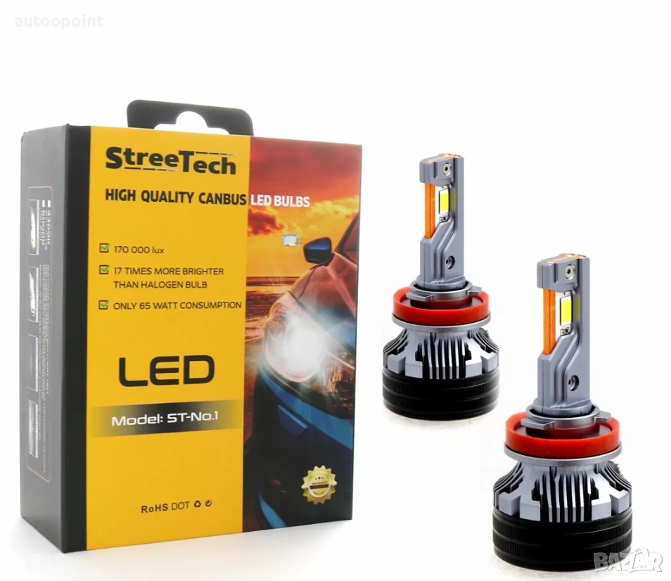 Лед крушки - Led система H11 / H8 / H9 Streetech модел STN1 за фарове - 170 000 Лукса, 65W - Canbus