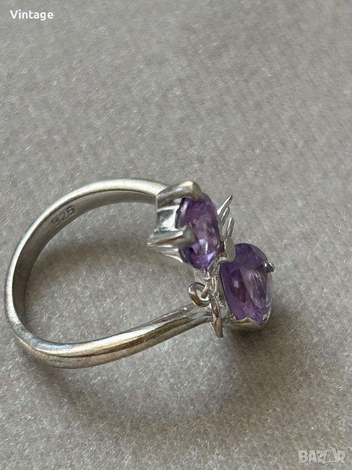 Луксозен дизайнерски сребърен пръстен с естествен аметист → Обява 53982151