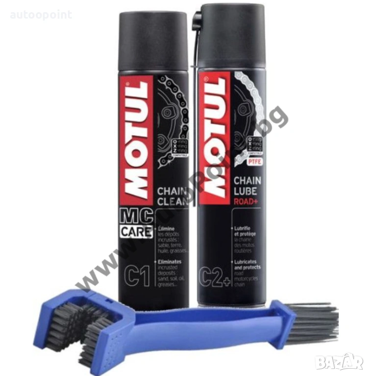 - Motul C1 Chain cleaner Почиства всички видове мотоциклетни (пътни и оф-роуд), АТВ и картинг вериги. Премахва всички инкрустирани депозити: пясък, пръст, масло, грес ... несъдържаща формула на хлор.