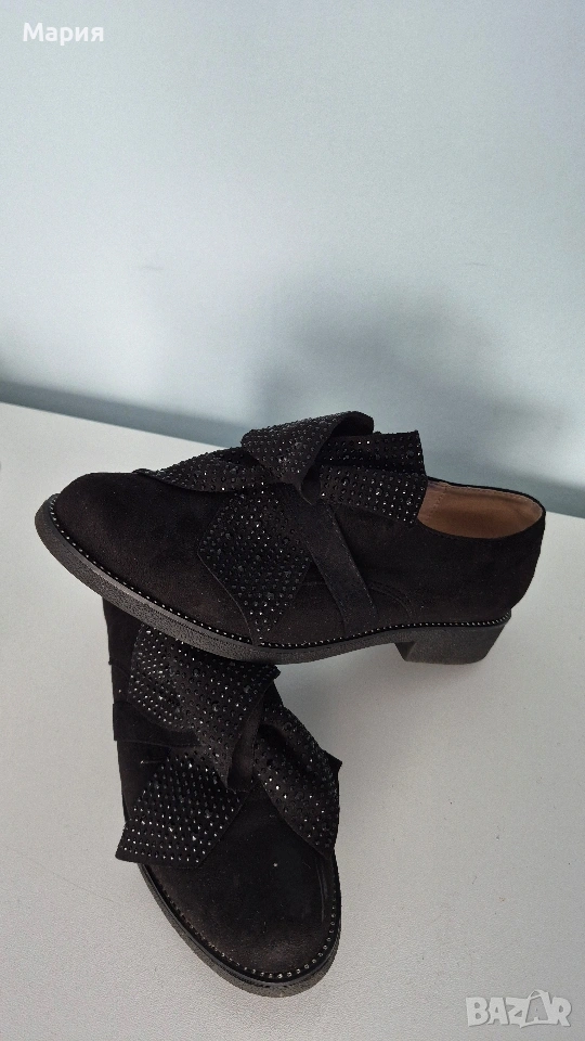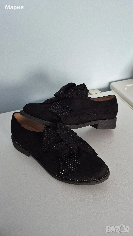 Дамски черни обувки номер 40, обувани веднъж. Подходящи за пролет и есен.