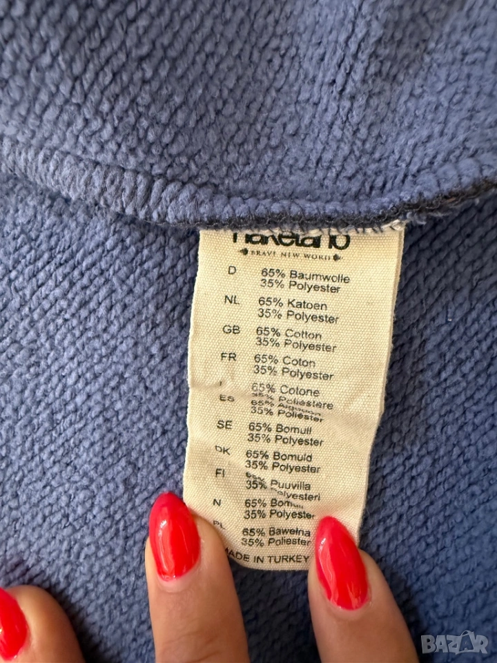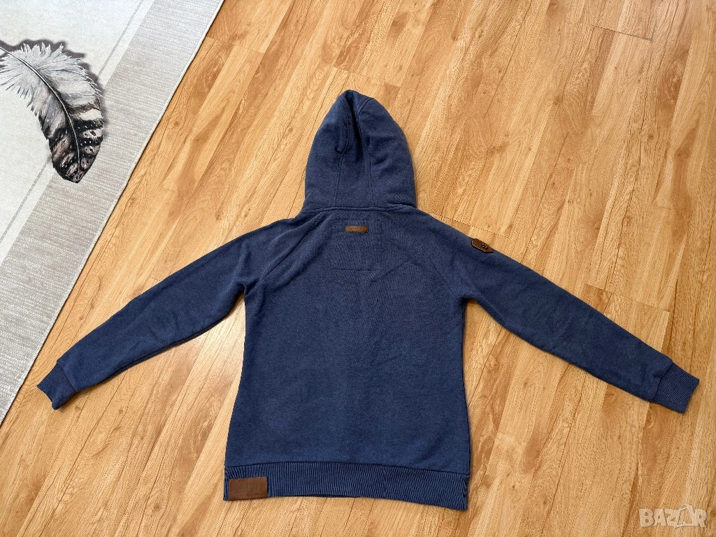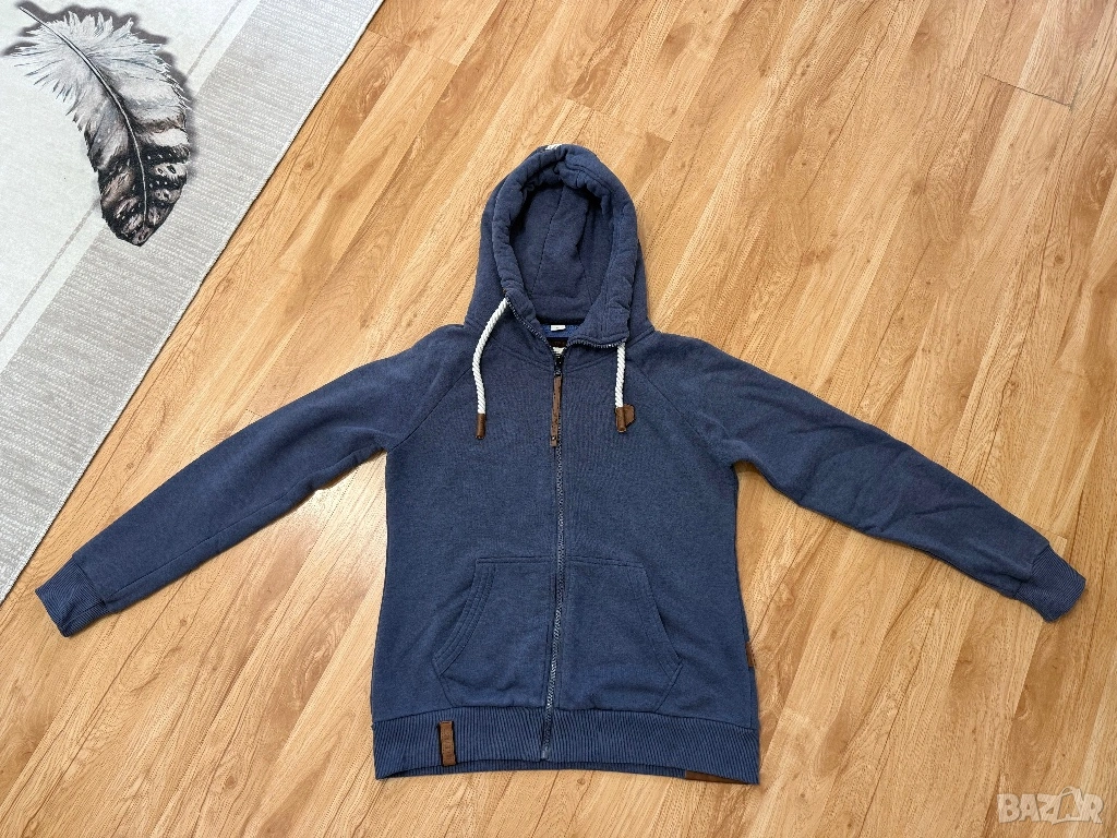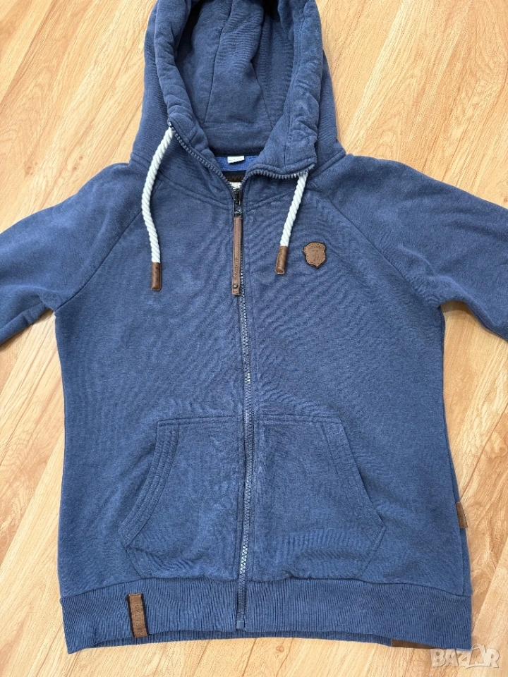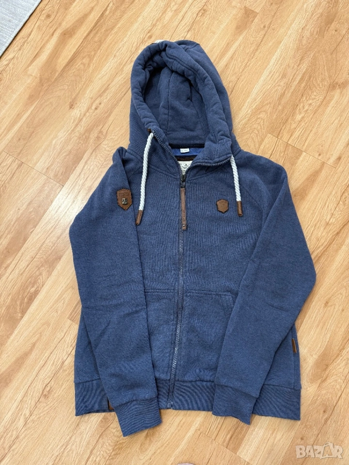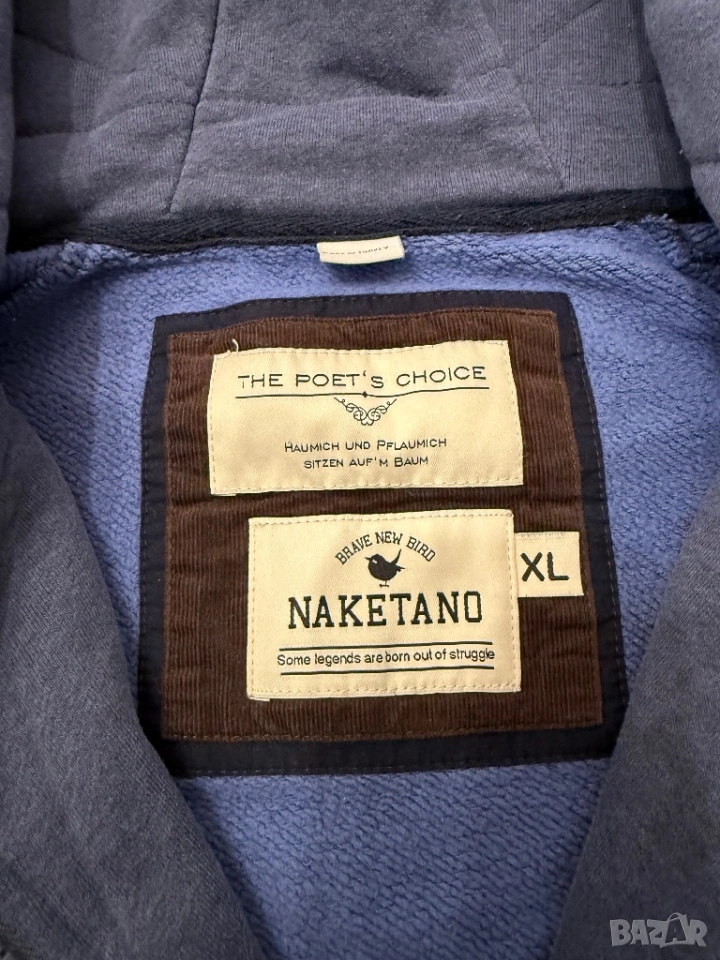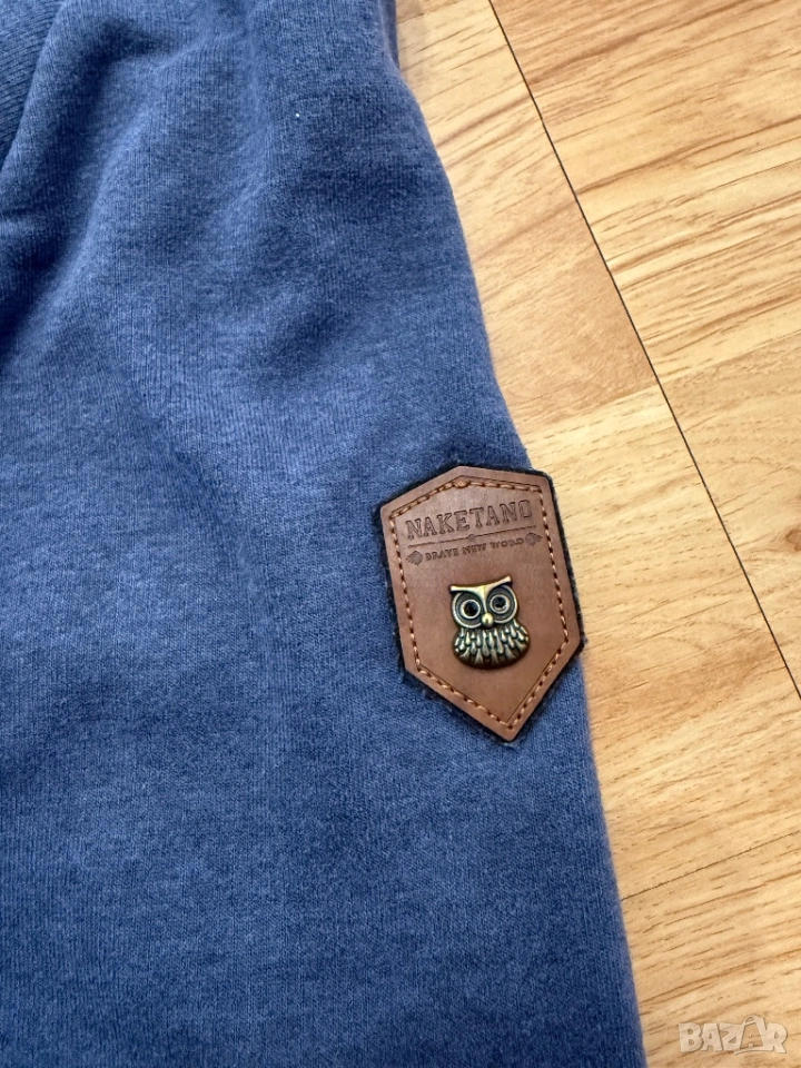 Оригинален мъжки спортен суитчър от марката Naketano в син цвят. По етикет е размер ХЛ, но размера не отговоря, затова според размера на съпруга ми е М/Л.