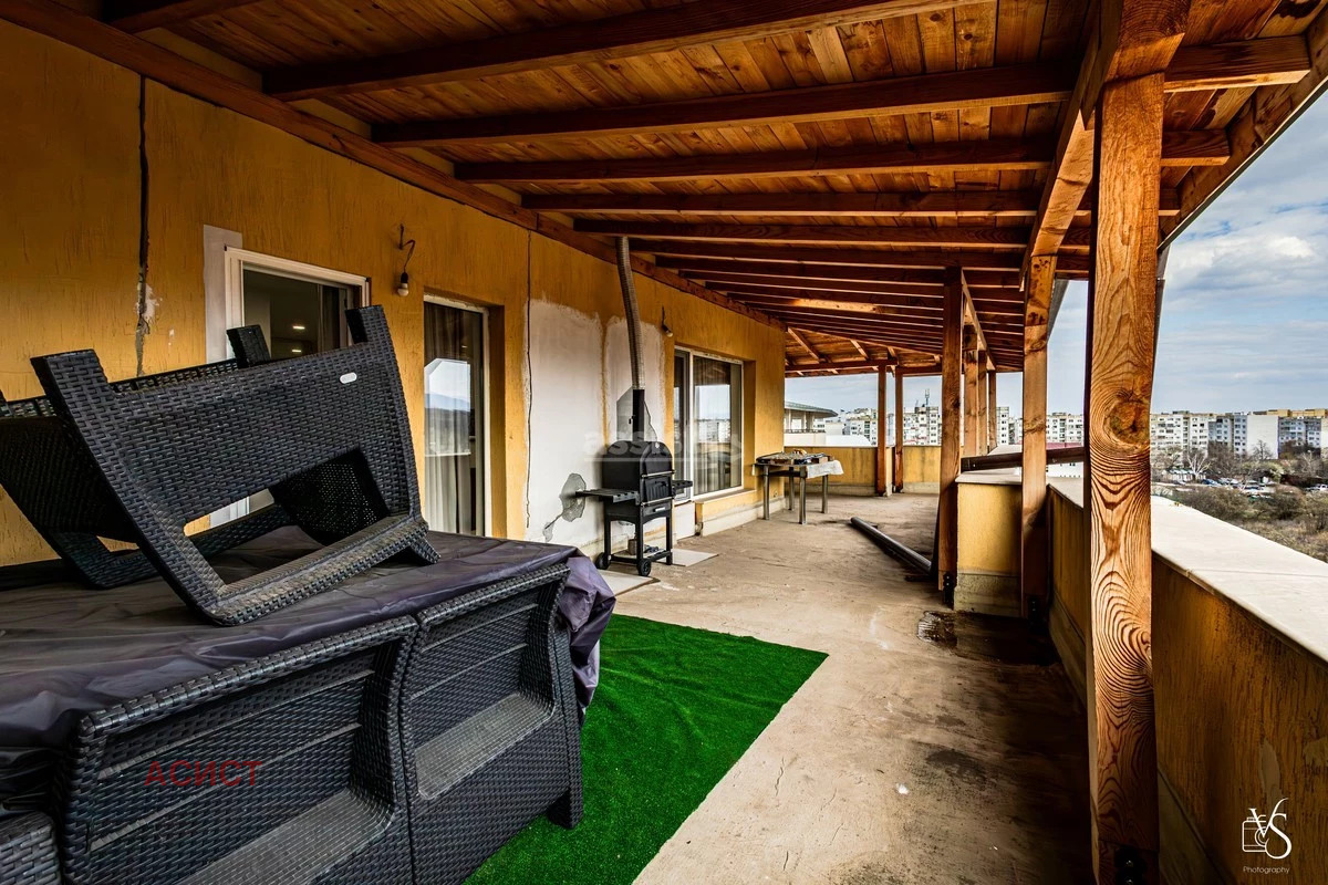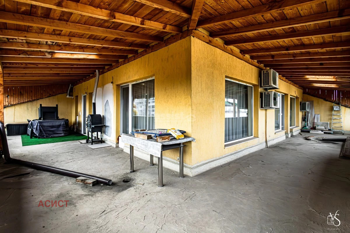 Апартаментът се състои от просторен хол с кухня, две спални, складово помещение, две бани с тоалетни и голяма тераса.