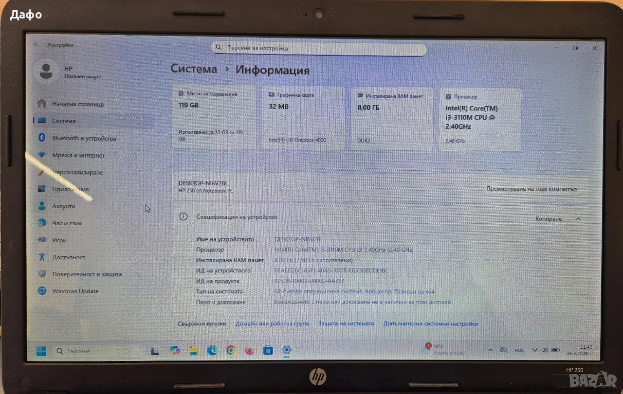 Лаптоп HP 250 G1 Core i3-3110M, снимка 1 - Лаптопи за дома - 53982531 Лаптоп HP 250 G1 Core i3-3110M, снимка 2 - Лаптопи за дома - 53982531 Лаптоп HP 250 G1 Core i3-3110M, снимка 3 - Лаптопи за дома - 53982531 Лаптоп HP 250 G1 Core i3-3110M, снимка 4 - Лаптопи за дома - 53982531 Лаптоп HP 250 G1 Core i3-3110M, снимка 5 - Лаптопи за дома - 53982531 1/5
