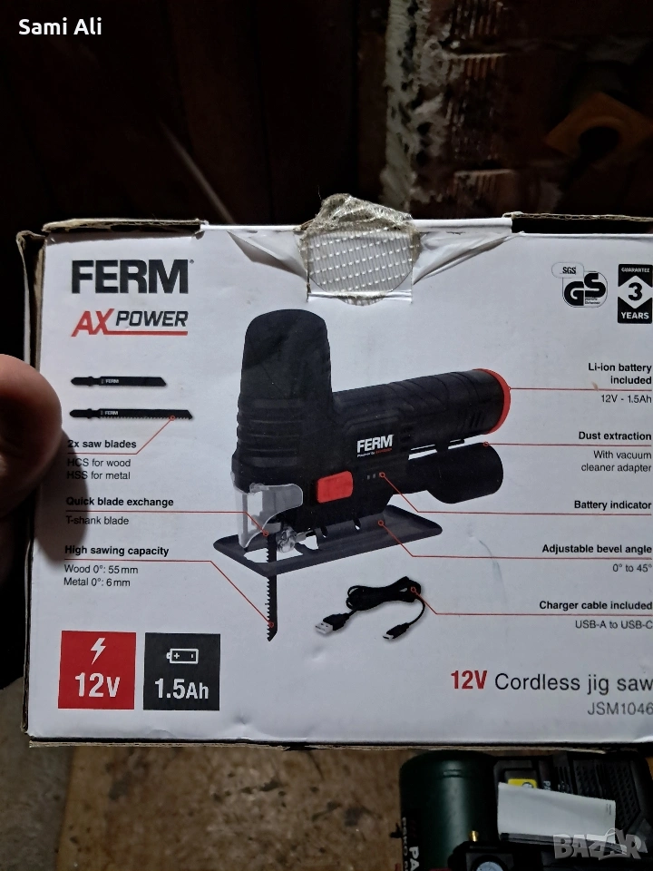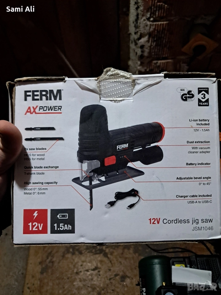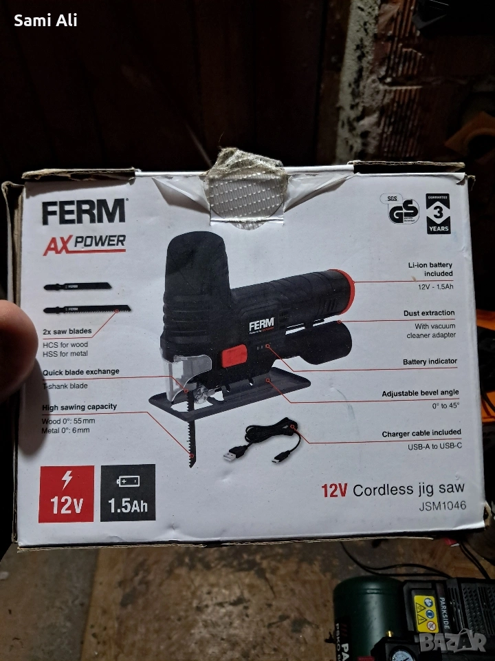 Продавам чисто нов, неизползван акумулаторен прободен трион (зеге) FERM JSM1046 от серията AX-POWER. Внос от Германия. Инструментът е в оригинална опаковка, идеален за домашни майстори и хоби проекти.Напрежение: 12V Li-ion батерия (включена в комплекта)