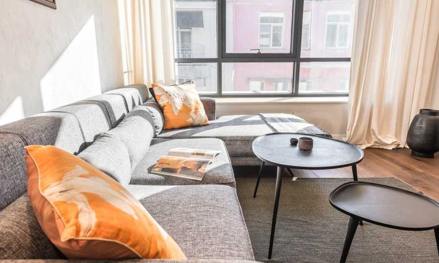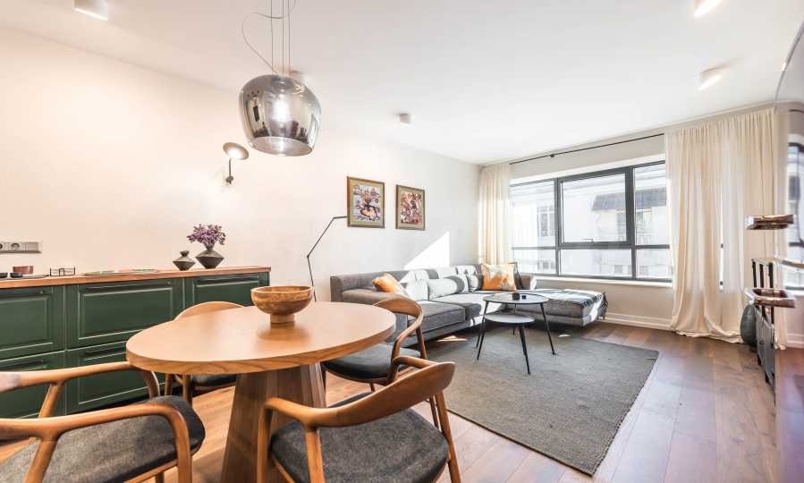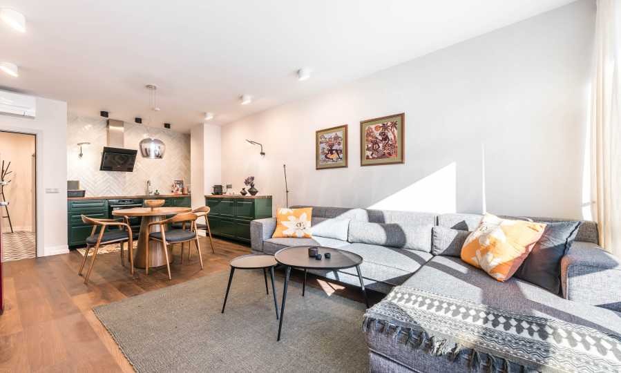 просторна и светла всекидневна с дизайнерско обзавеждане;