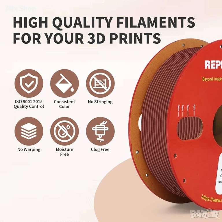 Нов RepRapper Wood PLA, Dual Color PLA Filament 1.75mm, 3D Printer Filament with Real Wood Fiber
