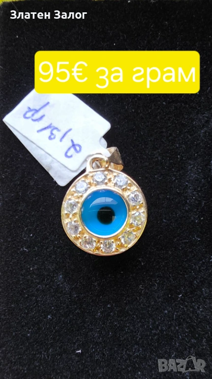 Златен медальон/висулка синьо око с камъни → Обява 53982887