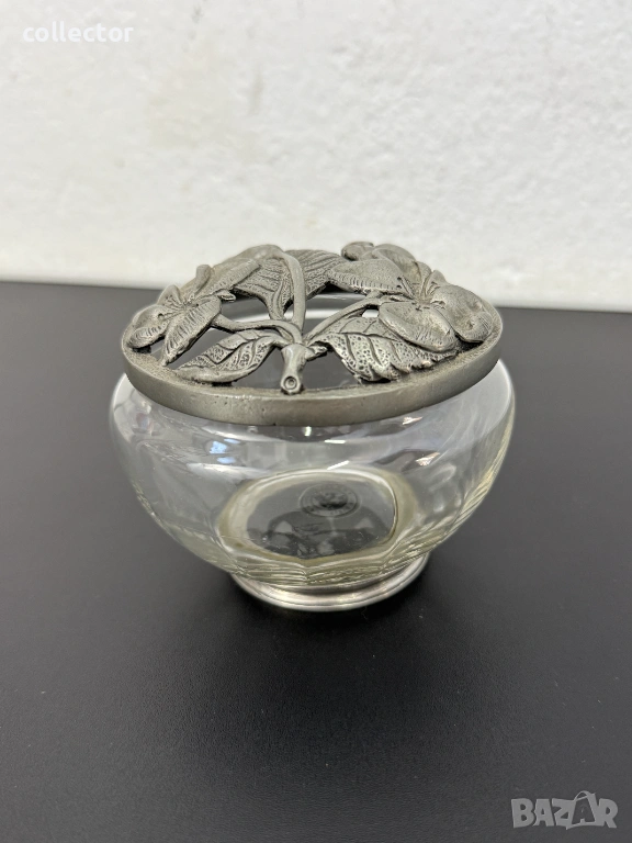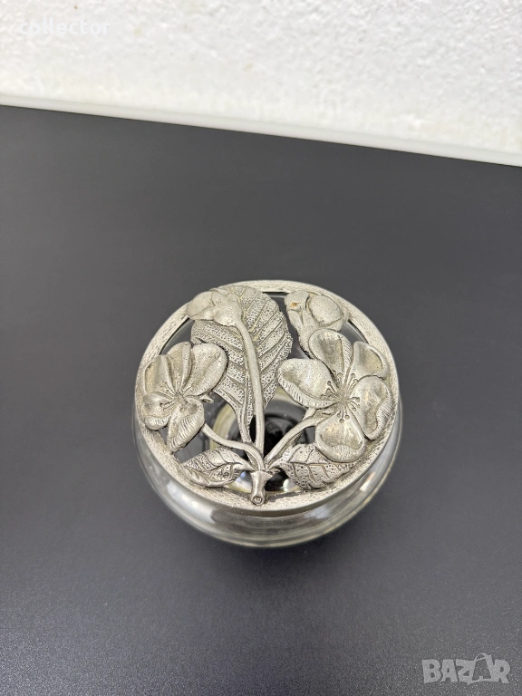Използва се за поставяне на изсушени ароматни цветя и билки (потпури). Отворите в капака позволяват на аромата да се разнася плавно в помещението. Изцяло ръчно изработена с калаен капак в флорални мотиви.