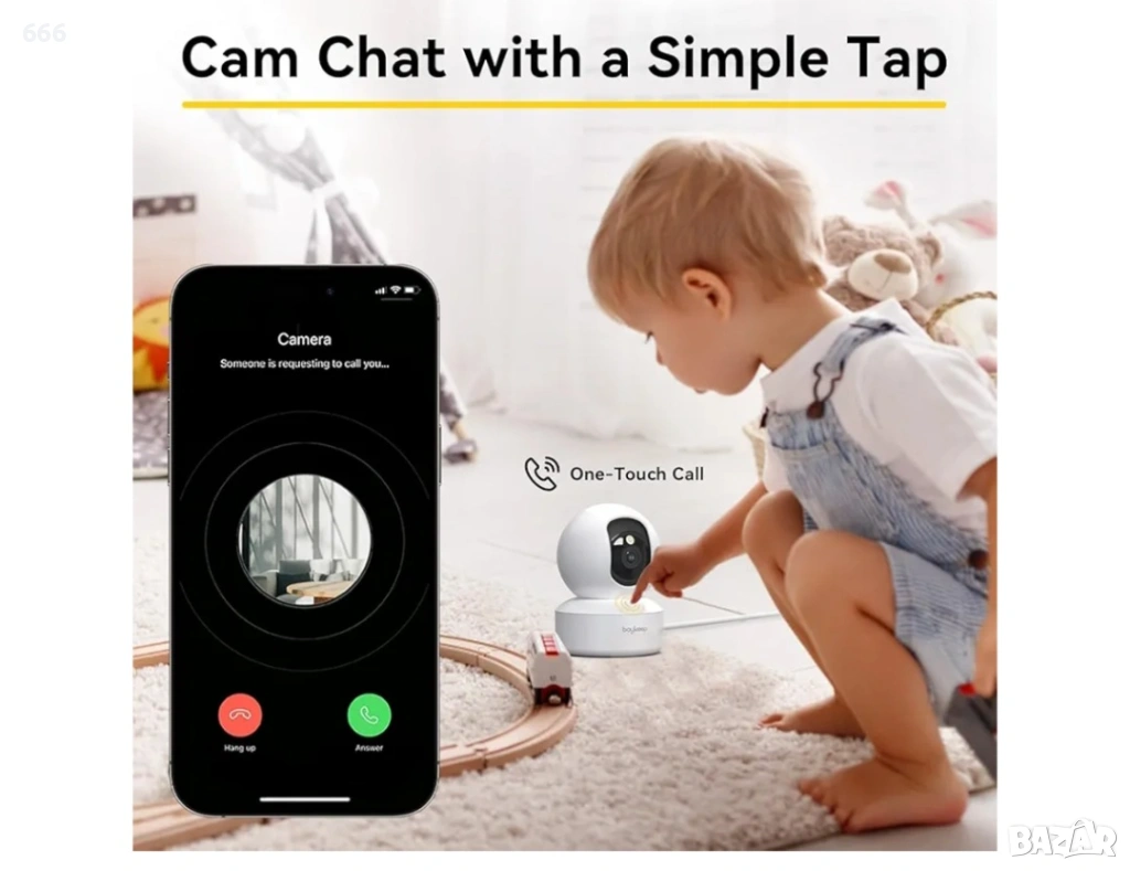 【Двупосочен разговор, връзка с едно докосване】 Охранителната камера позволява незабавна комуникация с едно докосване, благодарение на вградената двупосочна аудио връзка. Това повишава както безопасността, така и удобството за вашето семейство. Когато деца или възрастни хора се нуждаят от помощ, те могат просто да натиснат бутона за повикване с едно докосване на Wi-Fi камерата, за да започнат незабавно повикване.