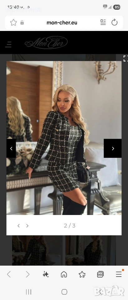 Сет букле Mon Cher, включващ рокля и късо сако. Обличан веднъж, без забележки. Размер S.