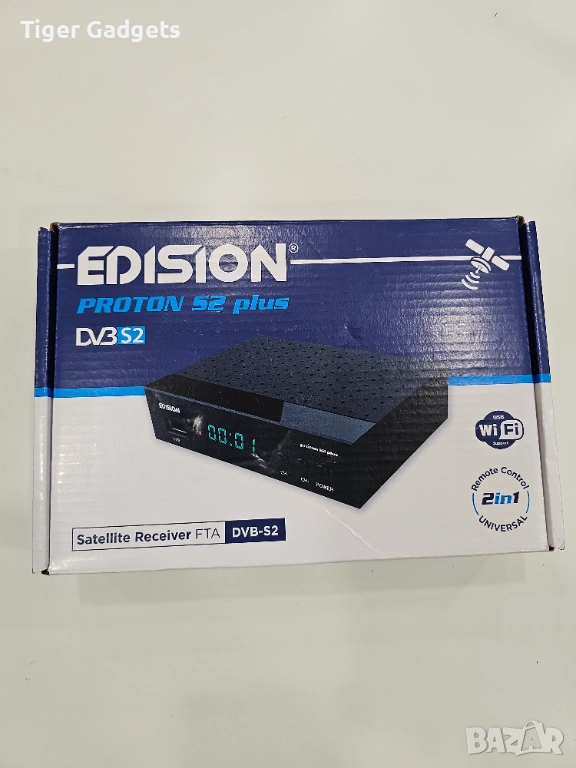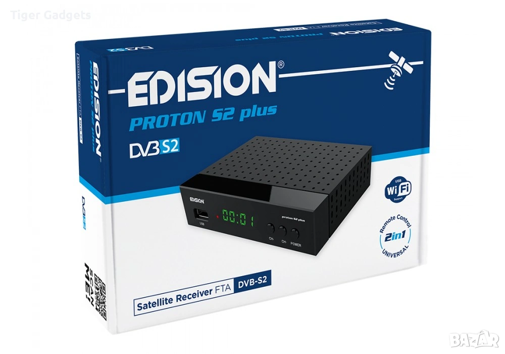 EDISION Proton S2 PLUS е компактен сателитен приемник за безплатни (FTA) канали, който предлага Full HD картина и стабилна работа. Подходящ е за домашна употреба, както и за вили, каравани или скрита инсталация зад телевизора.